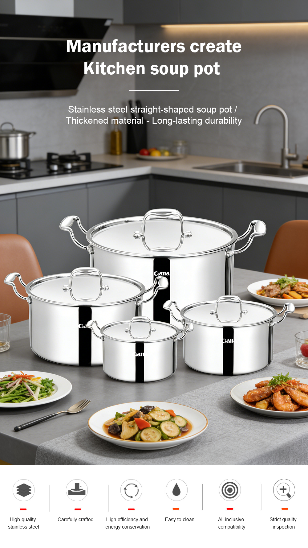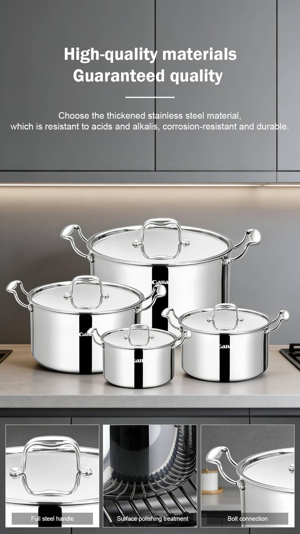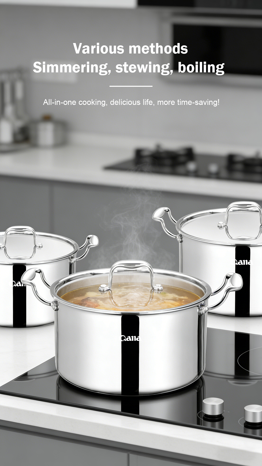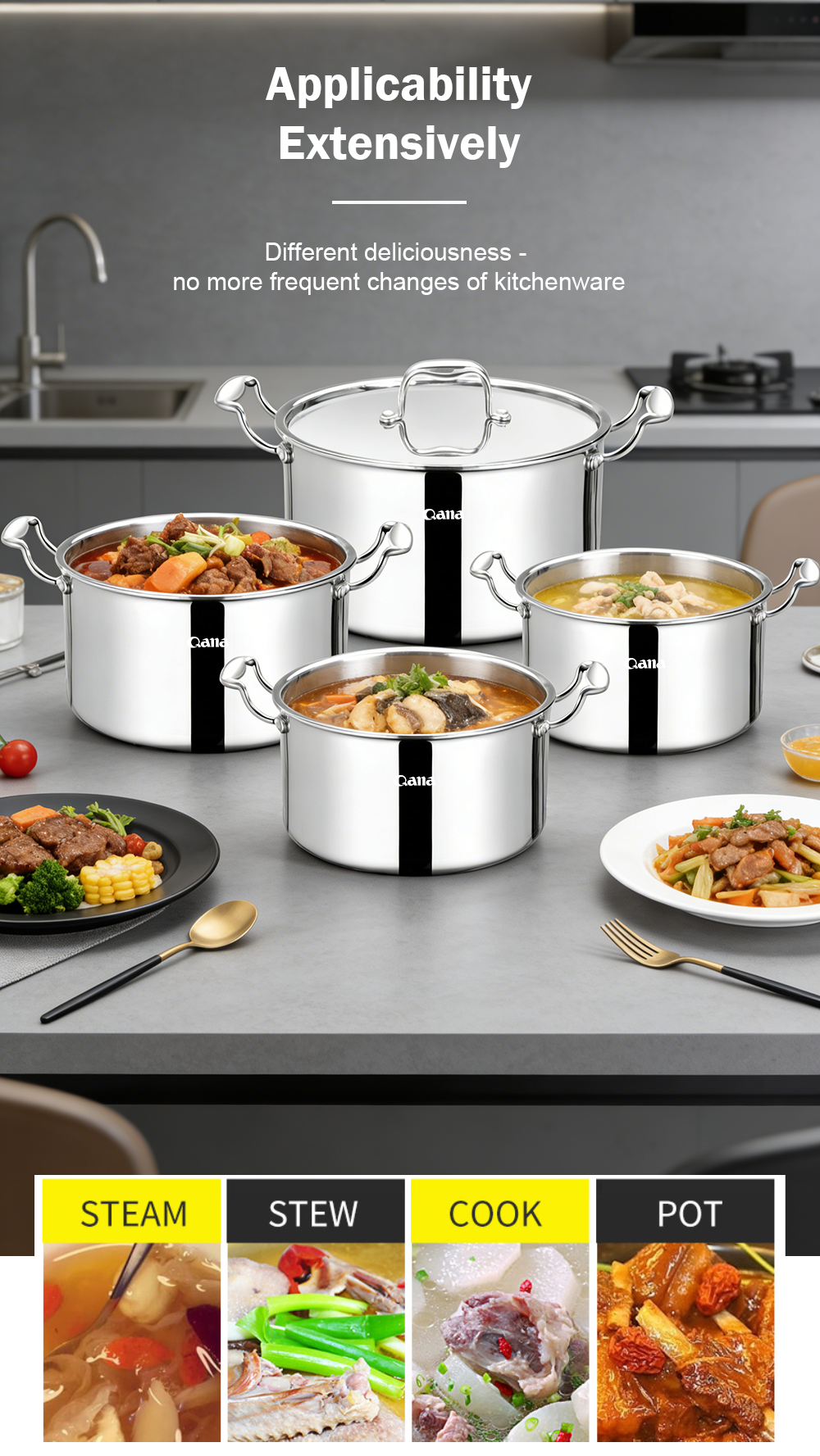 Home> Kitchen> Kitchen accessories> Pot> 3-layer steel pot 8 pcs set