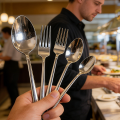 High quality tableware set of 6 pieces Spoons with hooks Made of 430 material Flatware Stock Laser 430