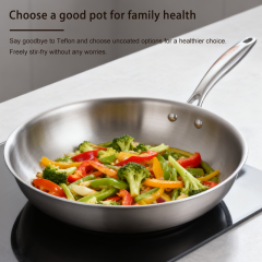 - HexClad 14 Inch Hybrid Stainless Steel Wok Pan with Stay Cool Handle Oven Safe for Daily CookingHEXCLAD PATENTED TECHNOLOGY: The hexagon design is created through a laser etching process to provide both stainless steel and non stick surface. This dual surface allows your non stick pan to sear still while using less oil, grease, and butter