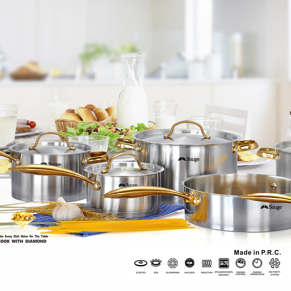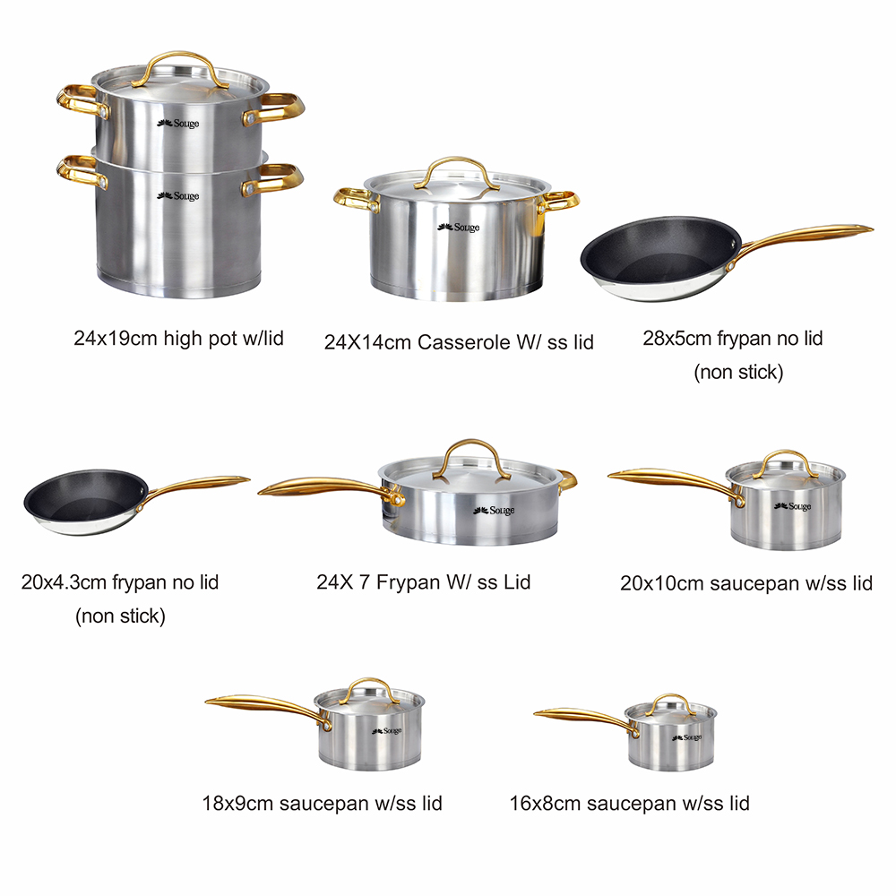 - Anyfish Stainless Steel Cookware 16PC Cookware Set Includes Saucepans Steamer and Lids【A DREAM SET】 Stainless steel cookware includes 2.3QT & 3.2QT saucepans with cover, 7.7” steamer insert, 8.9” open skillet, 10” skillet with cover, 4QT saute pan with cover,8QT stockpot with cover, stainless steel turner, slotted turner, ladle and slotted spoon.
