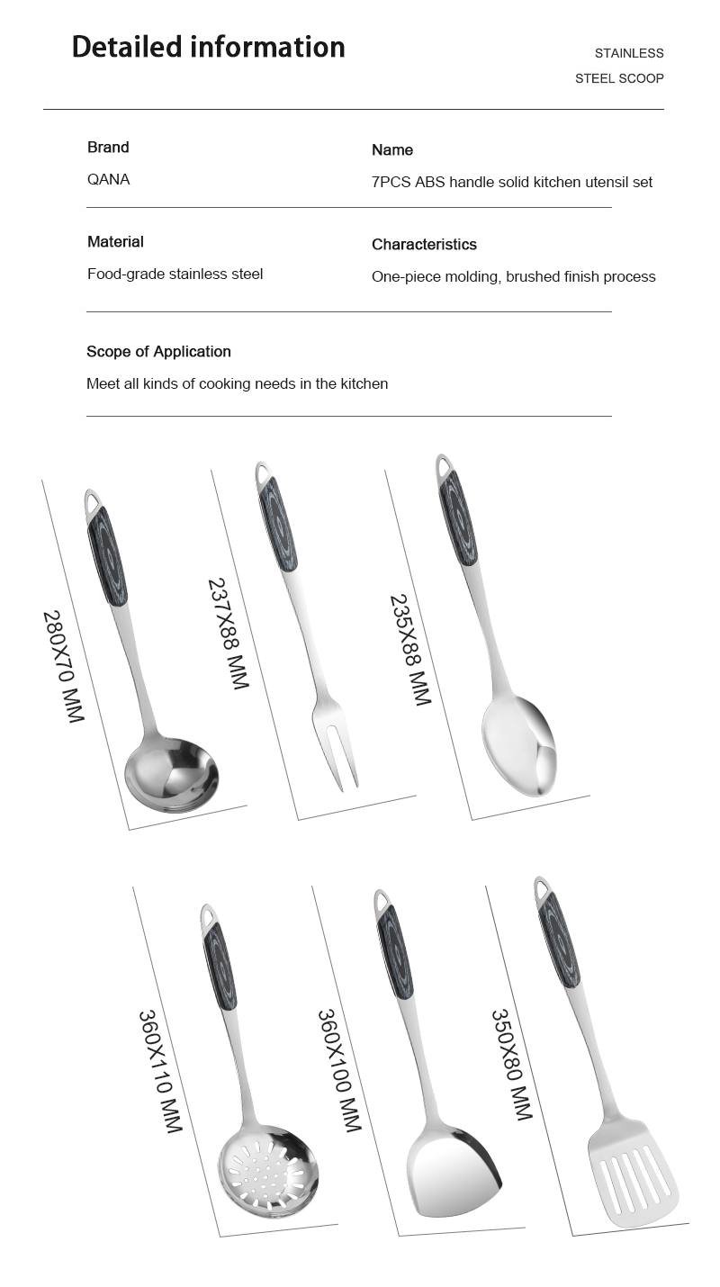 QANA Factory Wholesale OEM 7Pcs Stainless Steel Kitchenware cooking Tools set kitchen utensil slotted turner supplier