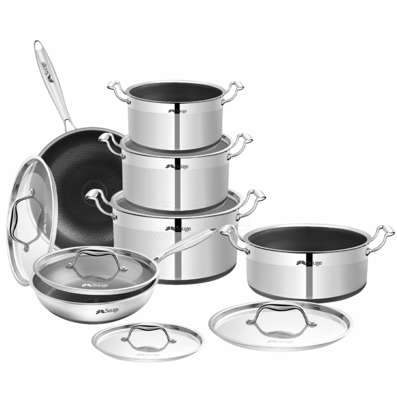 - Anyfish Stainless Steel Cookware 16PC Cookware Set Includes Saucepans Steamer and Lids【A DREAM SET】 Stainless steel cookware includes 2.3QT & 3.2QT saucepans with cover, 7.7” steamer insert, 8.9” open skillet, 10” skillet with cover, 4QT saute pan with cover,8QT stockpot with cover, stainless steel turner, slotted turner, ladle and slotted spoon.