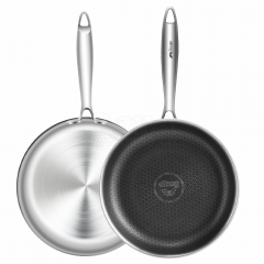 - HexClad 14 Inch Hybrid Stainless Steel Wok Pan with Stay Cool Handle Oven Safe for Daily CookingHEXCLAD PATENTED TECHNOLOGY: The hexagon design is created through a laser etching process to provide both stainless steel and non stick surface. This dual surface allows your non stick pan to sear still while using less oil, grease, and butter