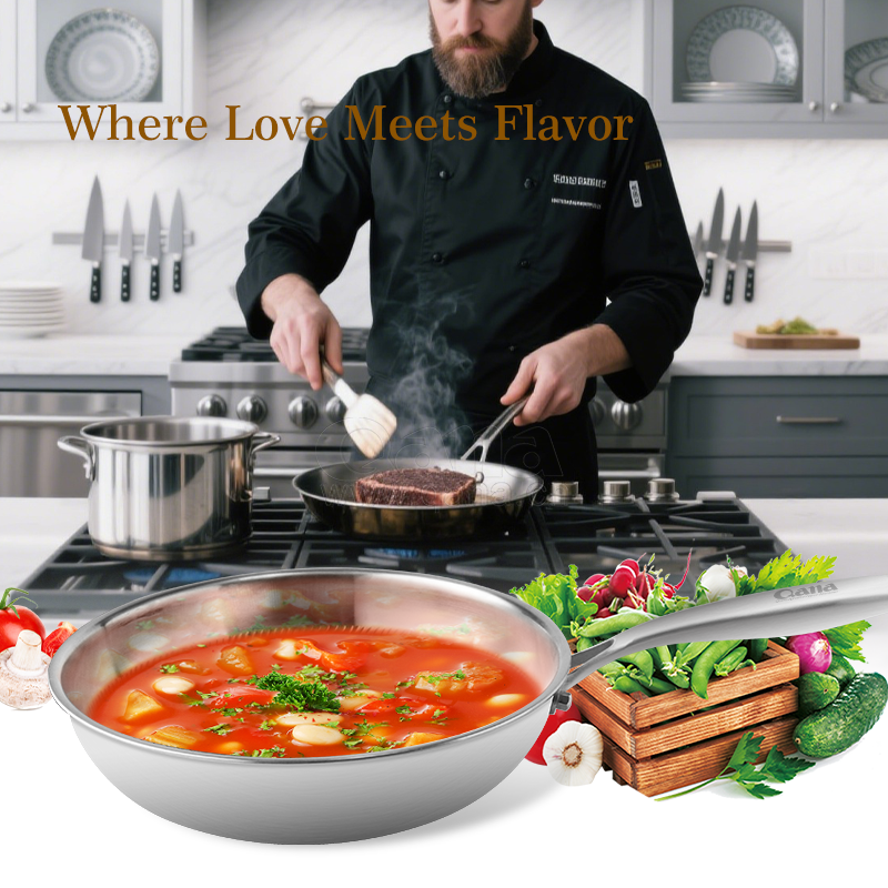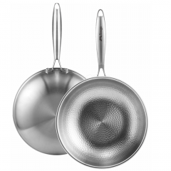 - HexClad 14 Inch Hybrid Stainless Steel Wok Pan with Stay Cool Handle Oven Safe for Daily CookingHEXCLAD PATENTED TECHNOLOGY: The hexagon design is created through a laser etching process to provide both stainless steel and non stick surface. This dual surface allows your non stick pan to sear still while using less oil, grease, and butter