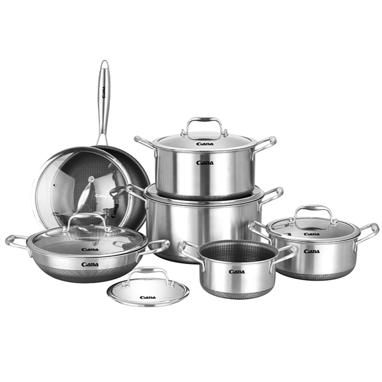 - Anyfish Stainless Steel Cookware 16PC Cookware Set Includes Saucepans Steamer and Lids【A DREAM SET】 Stainless steel cookware includes 2.3QT & 3.2QT saucepans with cover, 7.7” steamer insert, 8.9” open skillet, 10” skillet with cover, 4QT saute pan with cover,8QT stockpot with cover, stainless steel turner, slotted turner, ladle and slotted spoon.