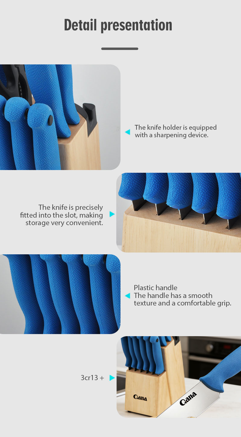 QANA 2Factory quick delivery of kitchen knife sets for household use FAD hollow handle knife 251 sets