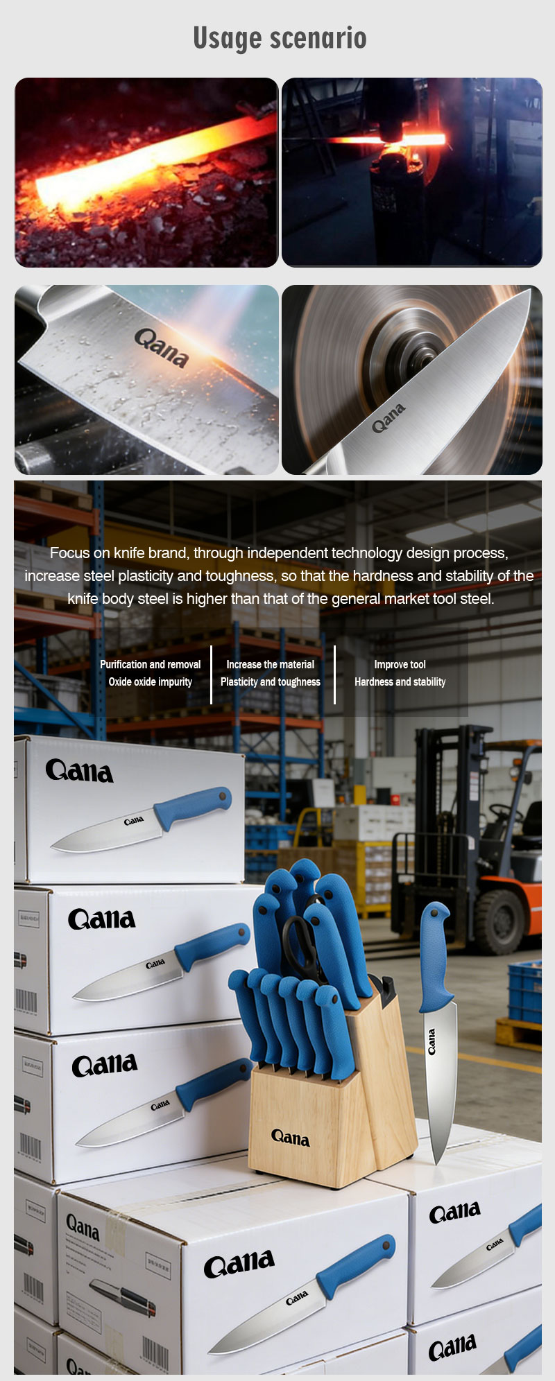 QANA 3Factory quick delivery of kitchen knife sets for household use MD hollow shank knife 572 sets