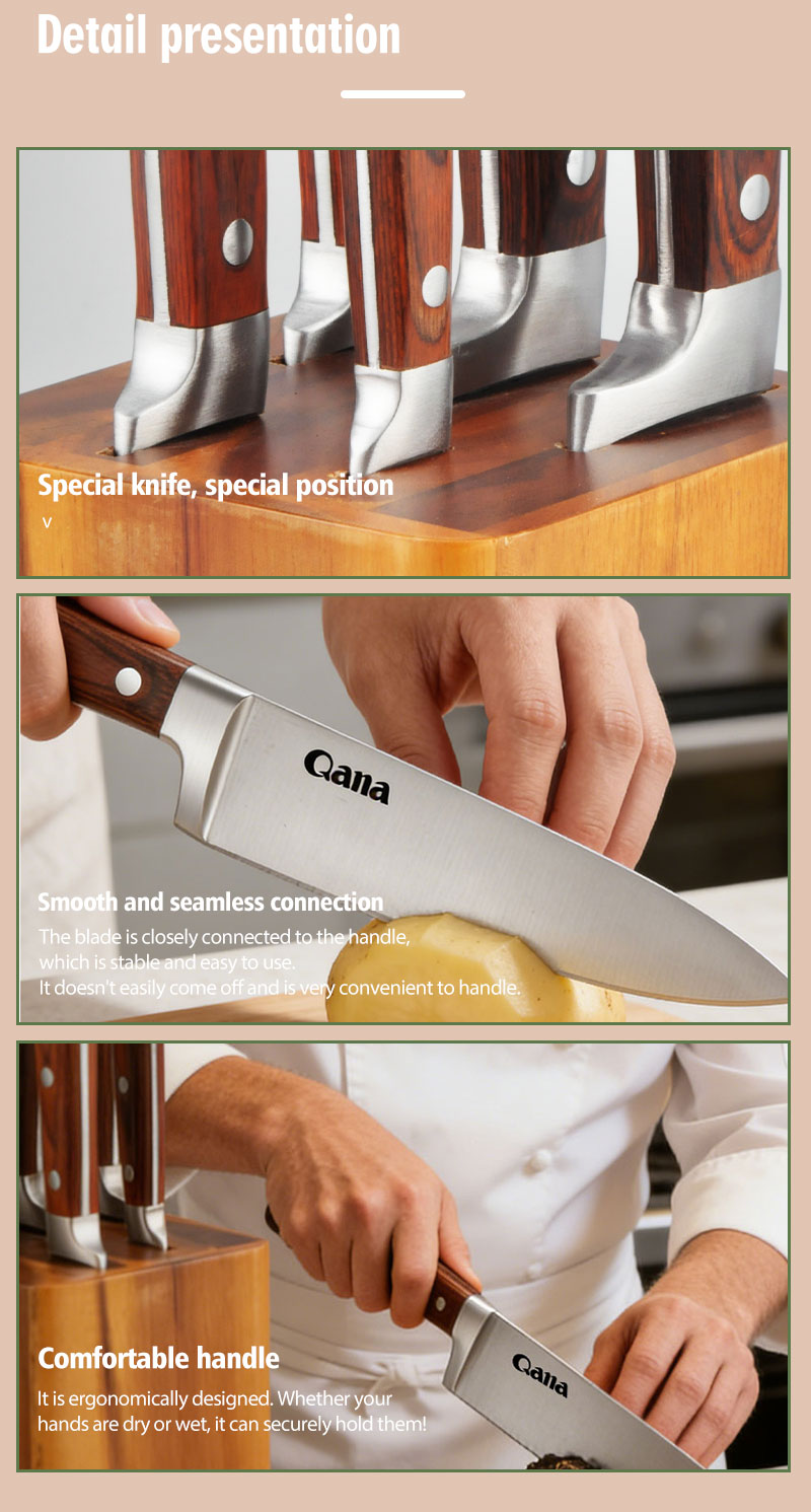 8" chef knife/8" bread knife/8" slicer knife/5" utility knife/3.5" peeling knife/Scissors/6* 4" steak knife /Wood stand