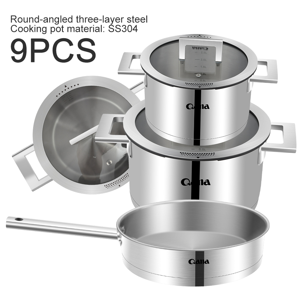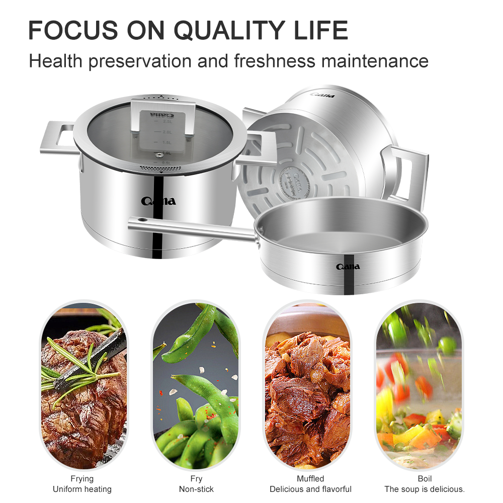 - Anyfish Stainless Steel Cookware 16PC Cookware Set Includes Saucepans Steamer and Lids【A DREAM SET】 Stainless steel cookware includes 2.3QT & 3.2QT saucepans with cover, 7.7” steamer insert, 8.9” open skillet, 10” skillet with cover, 4QT saute pan with cover,8QT stockpot with cover, stainless steel turner, slotted turner, ladle and slotted spoon.
