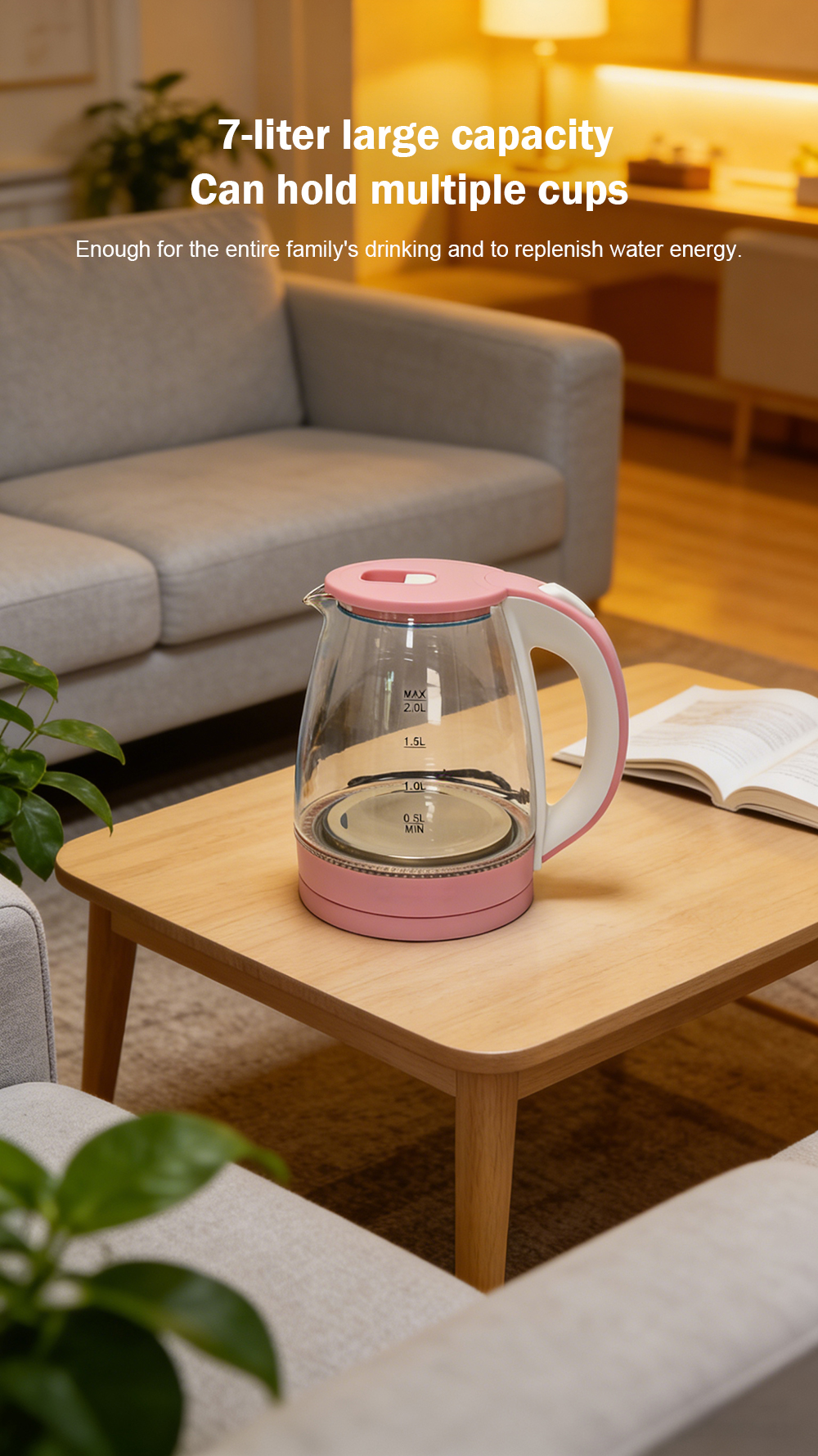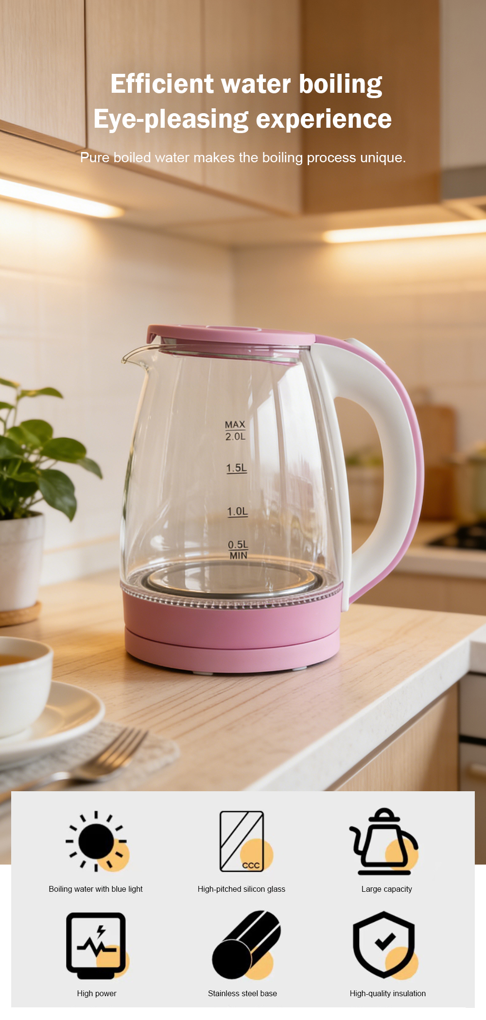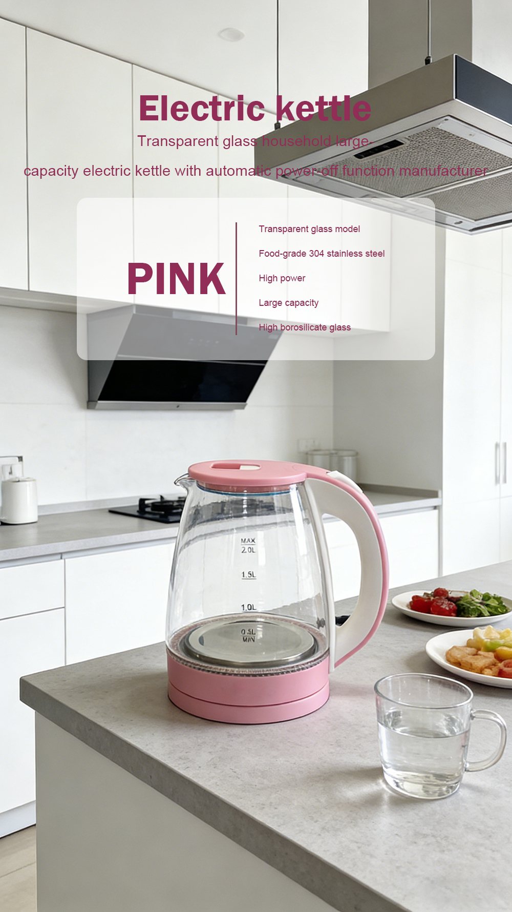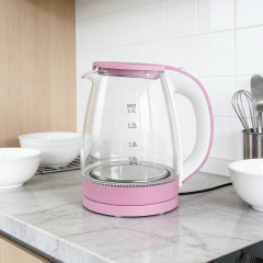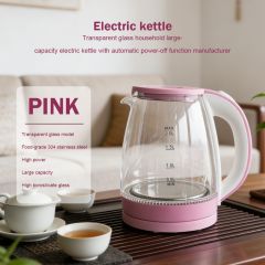 Automatic power-off electric kettle with transparent glass for household use, manufactured by a factory.