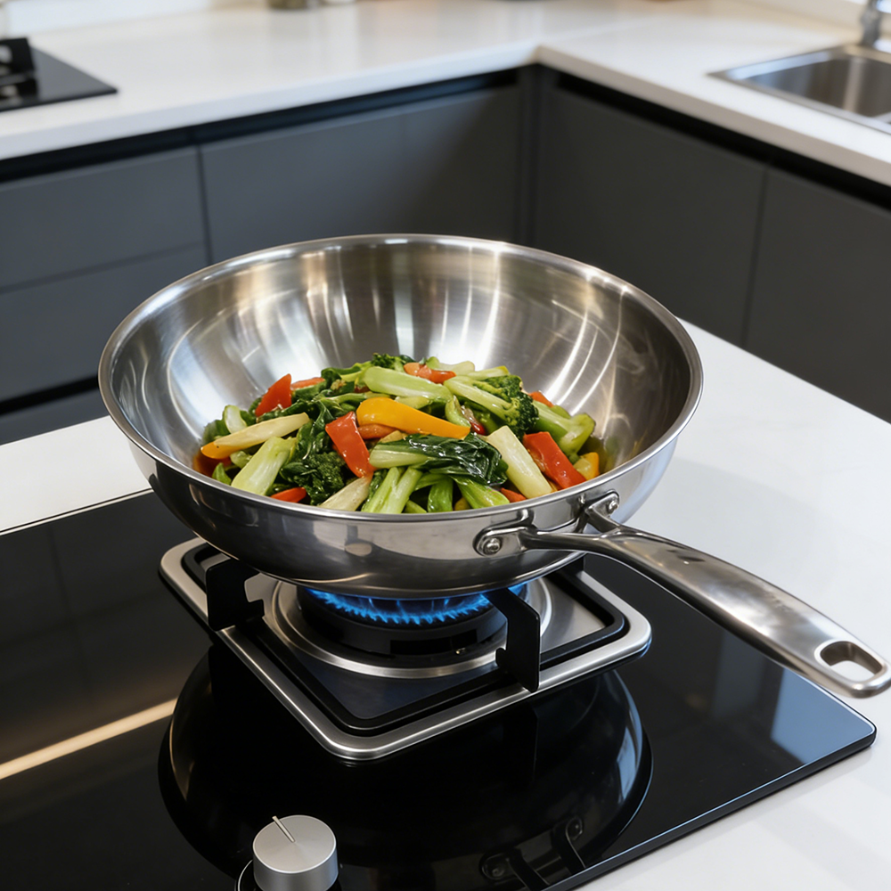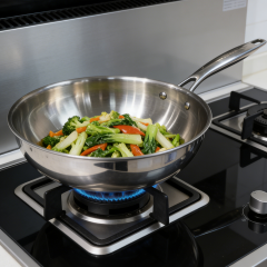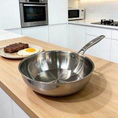 - HexClad 14 Inch Hybrid Stainless Steel Wok Pan with Stay Cool Handle Oven Safe for Daily CookingHEXCLAD PATENTED TECHNOLOGY: The hexagon design is created through a laser etching process to provide both stainless steel and non stick surface. This dual surface allows your non stick pan to sear still while using less oil, grease, and butter