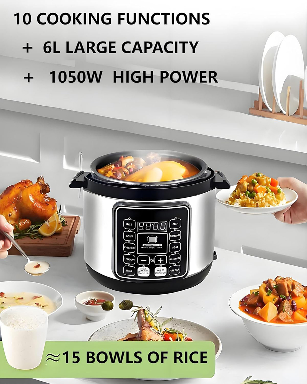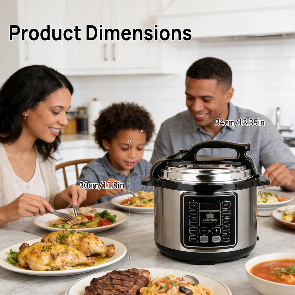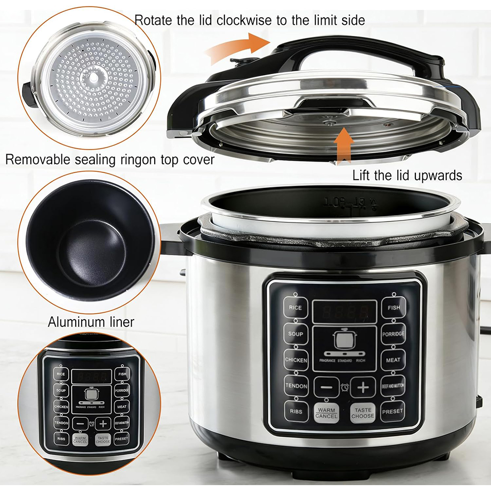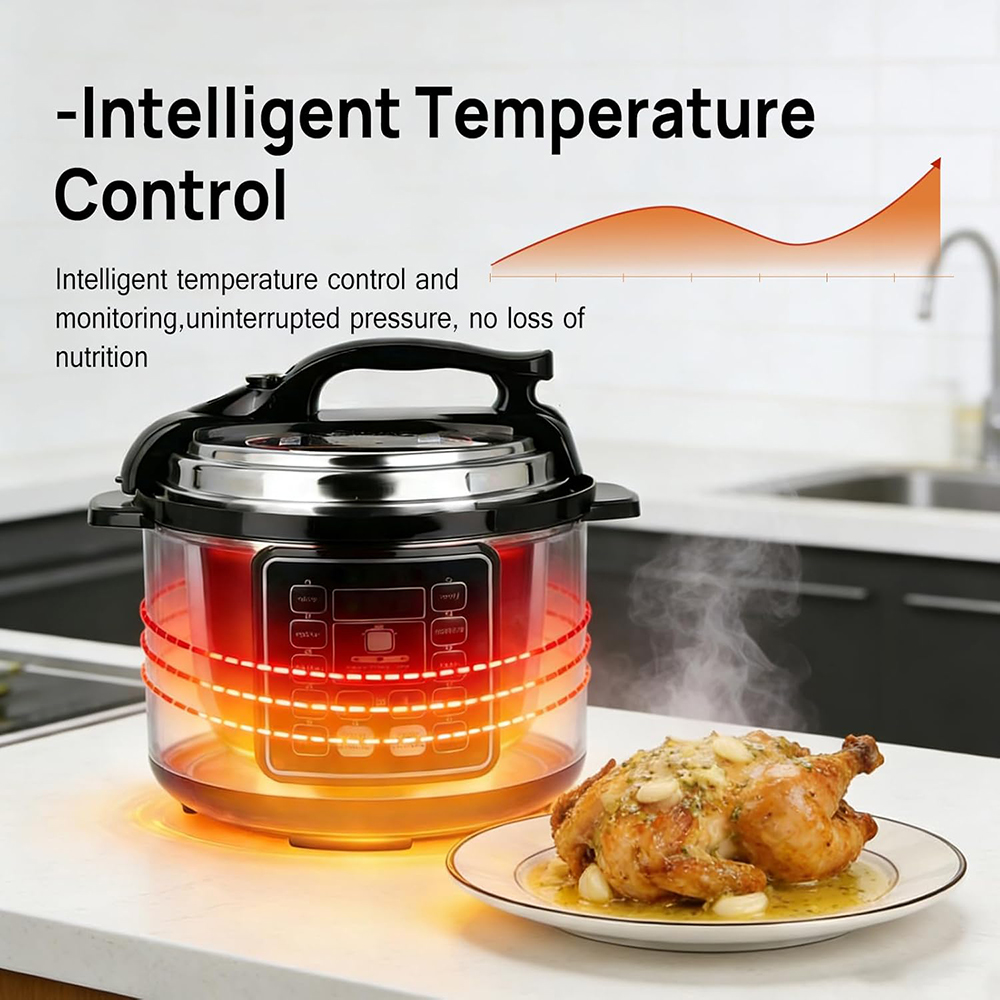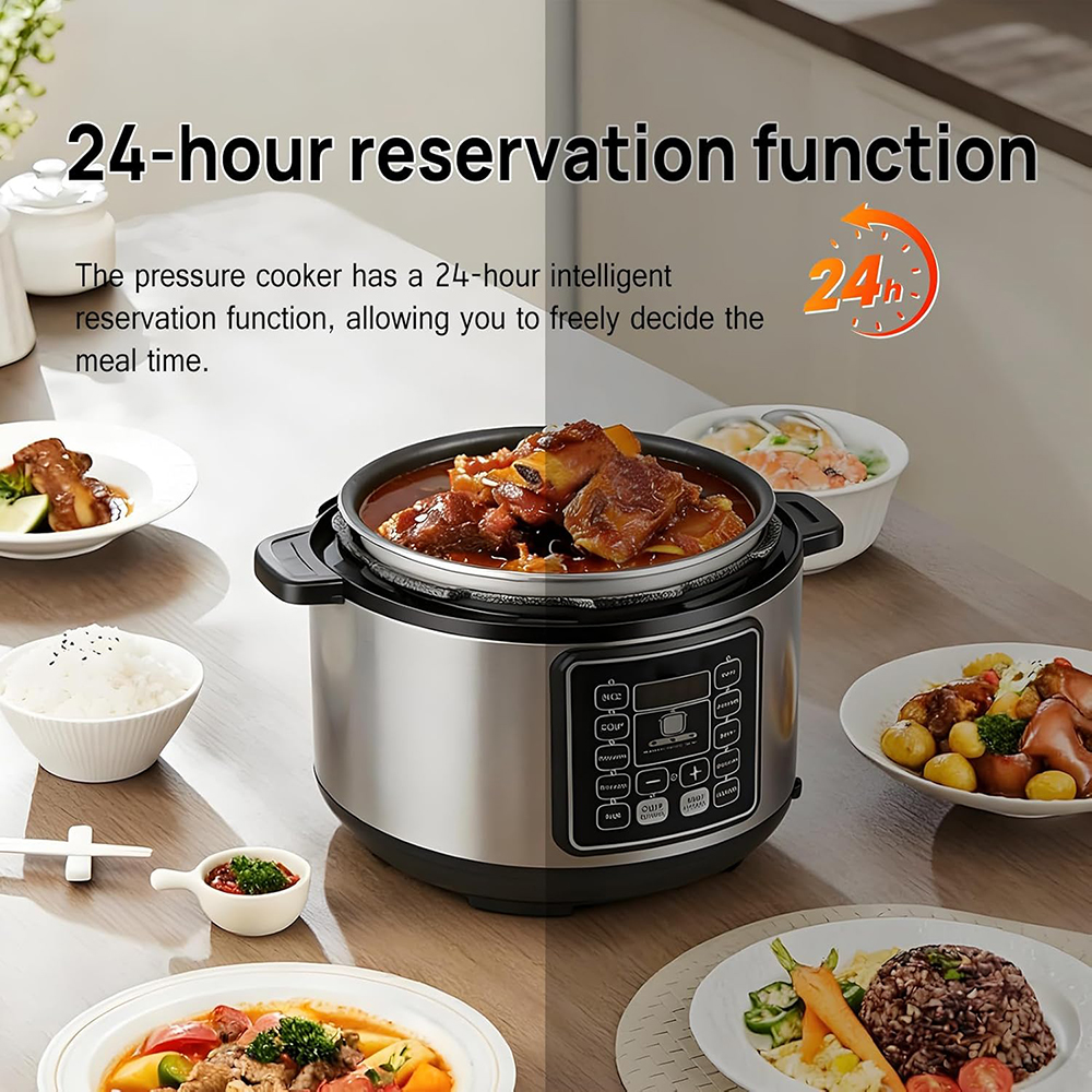 Sufficient Capacity: Electric pressure cooker 6L has a large capacity area, spacious internal space, suitable for the whole family to use, saving time and energy.