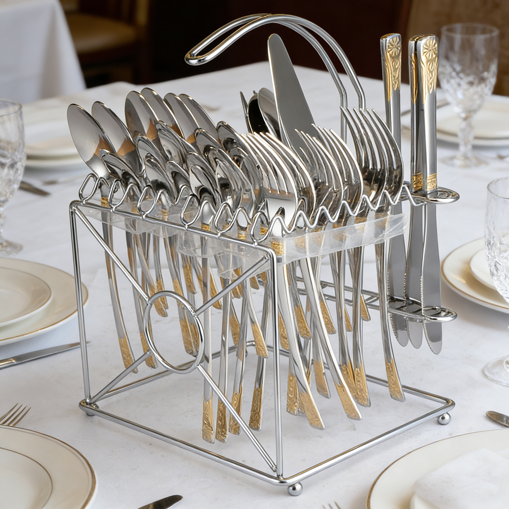 24 Pieces Flatware Set Knives and Forks and Spoons Cutlery Set with Silverware Holder