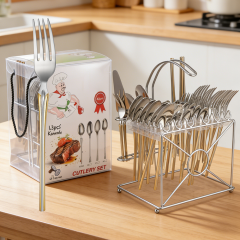 24 Pieces Flatware Set Knives and Forks and Spoons Cutlery Set with Silverware Holder