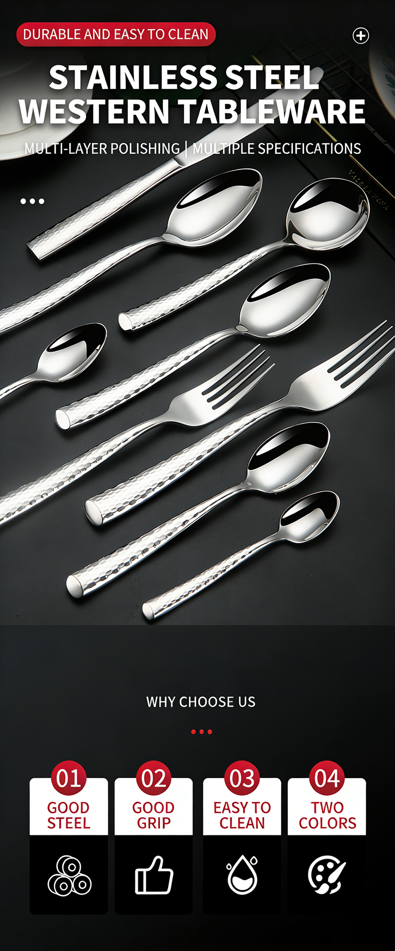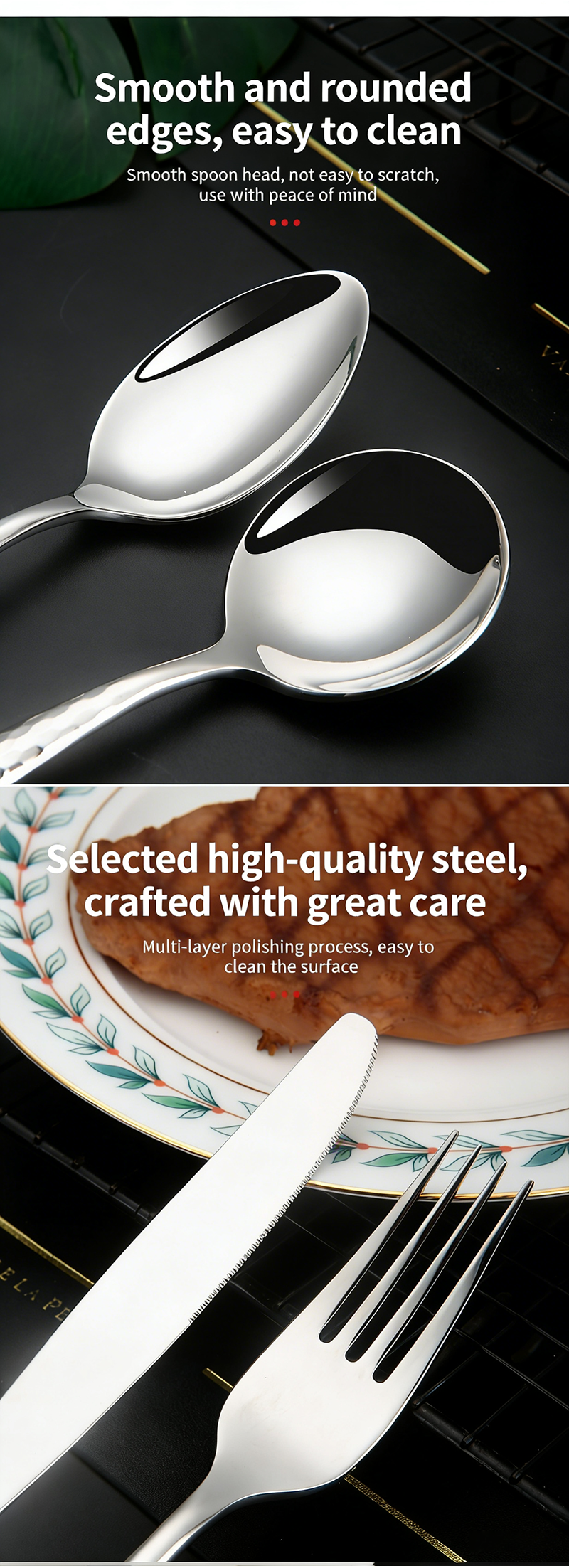 86PCS stainless steel tableware set, food grade tableware set, family restaurant tableware set