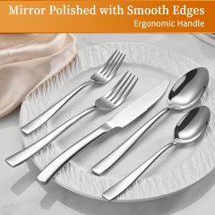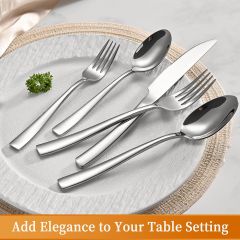 Elegant Design: This is a very modern art style silverware set, clean lines, highly mirror polished, smooth edges, free of rough spots and edges, unique and elegant appearance would match well with your existing eating utensils, enhance your dining experience.