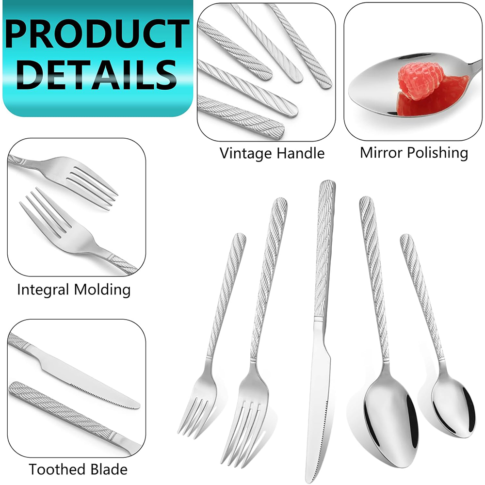24 Pieces Flatware Set Knives and Forks and Spoons Cutlery Set with Silverware Holder