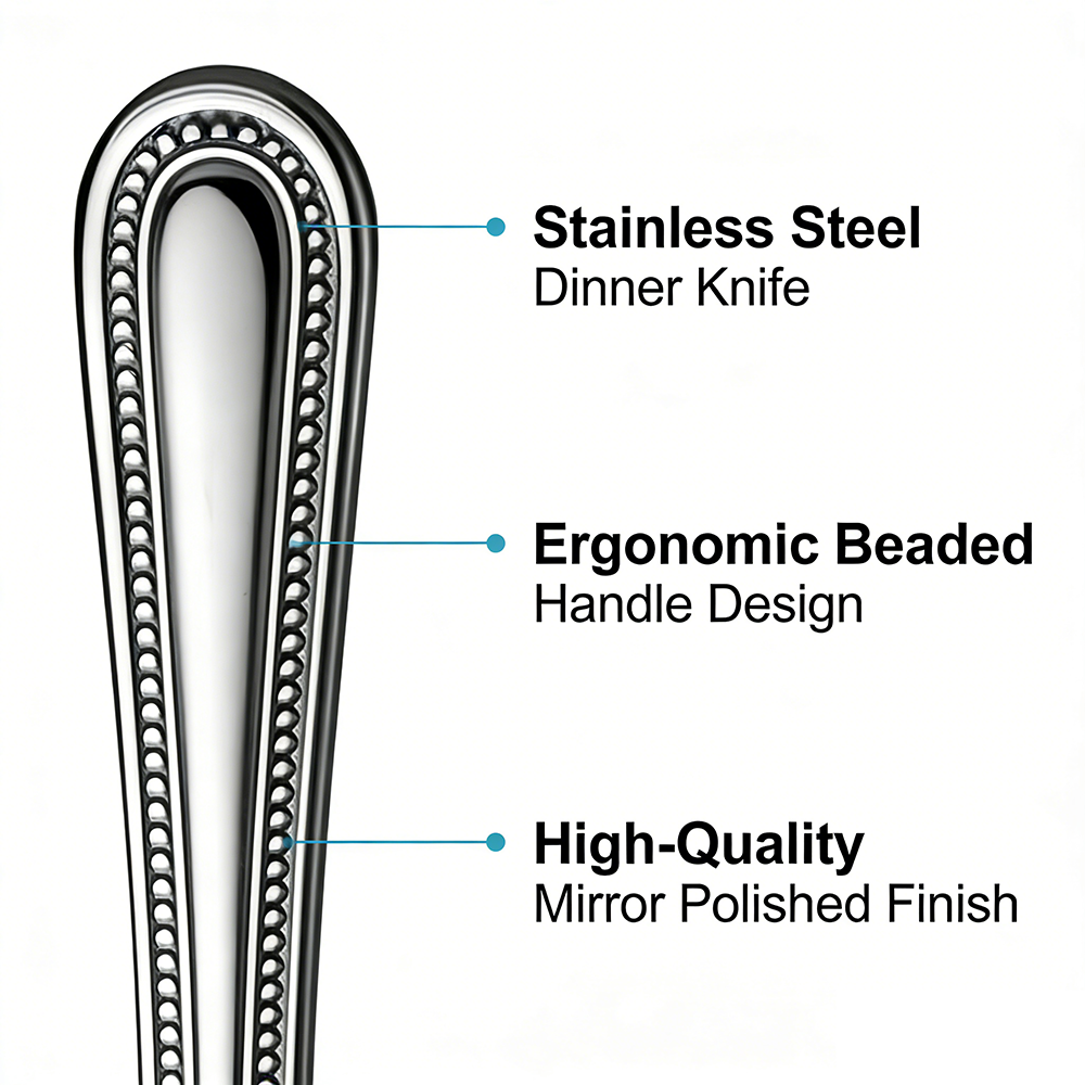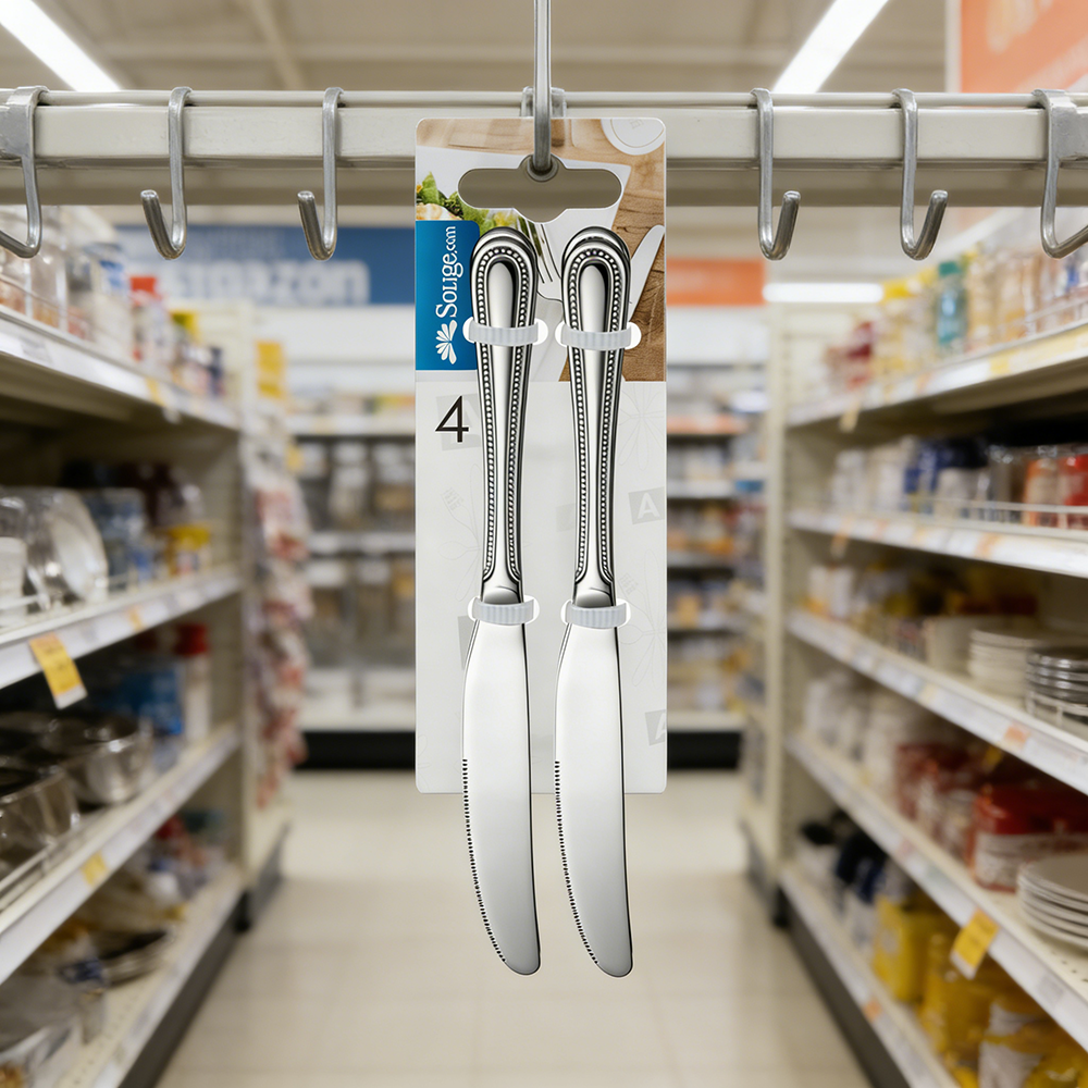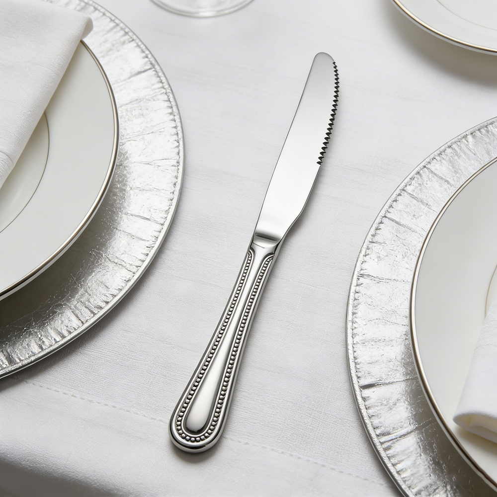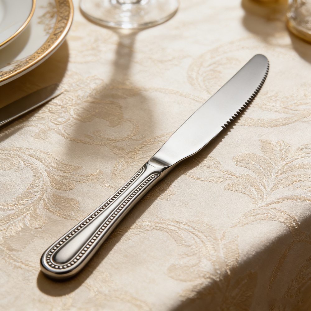High-quality table knife set (4 pieces) with fork included. Made of 430 stainless steel.