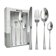 24 Pieces Flatware Set Knives and Forks and Spoons Cutlery Set with Silverware Holder