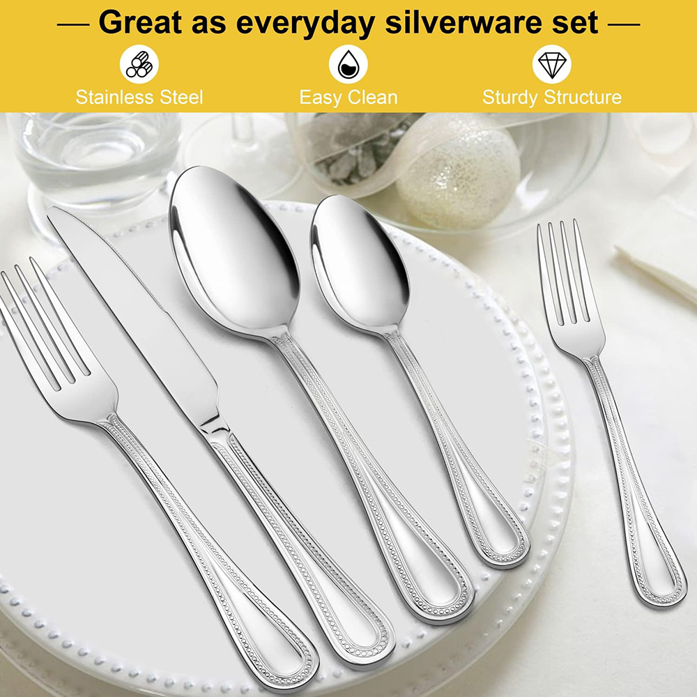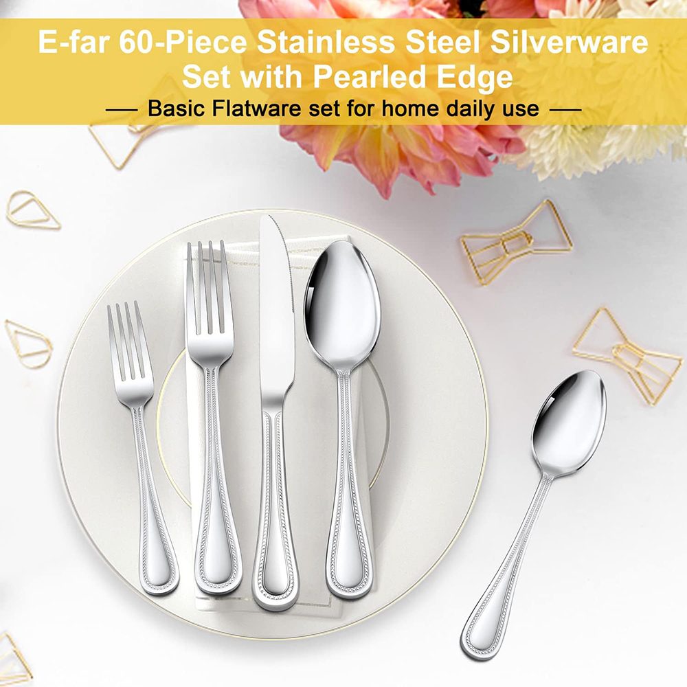 24 Pieces Flatware Set Knives and Forks and Spoons Cutlery Set with Silverware Holder