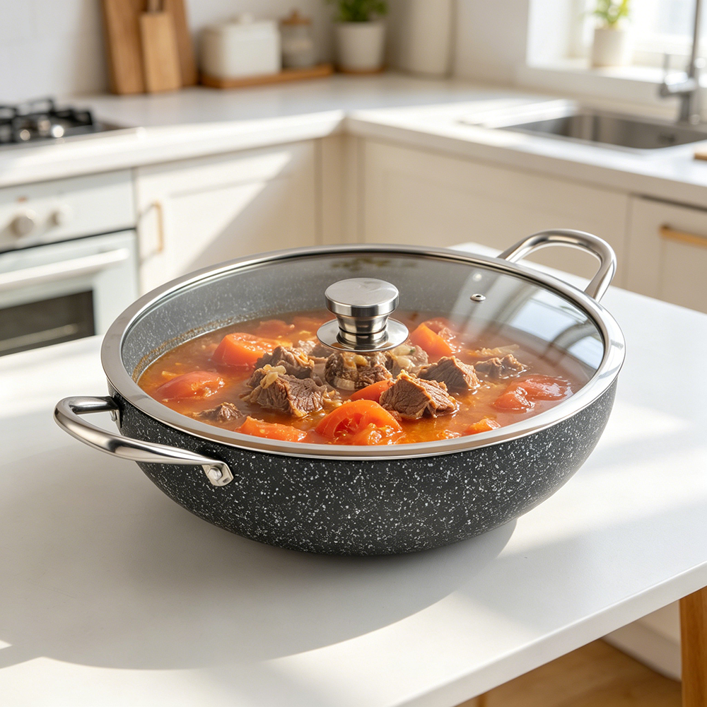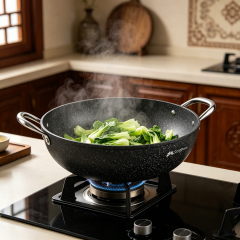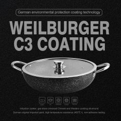 - HexClad 14 Inch Hybrid Stainless Steel Wok Pan with Stay Cool Handle Oven Safe for Daily CookingHEXCLAD PATENTED TECHNOLOGY: The hexagon design is created through a laser etching process to provide both stainless steel and non stick surface. This dual surface allows your non stick pan to sear still while using less oil, grease, and butter