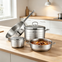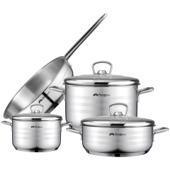 - Anyfish Stainless Steel Cookware 16PC Cookware Set Includes Saucepans Steamer and Lids【A DREAM SET】 Stainless steel cookware includes 2.3QT & 3.2QT saucepans with cover, 7.7” steamer insert, 8.9” open skillet, 10” skillet with cover, 4QT saute pan with cover,8QT stockpot with cover, stainless steel turner, slotted turner, ladle and slotted spoon.