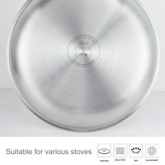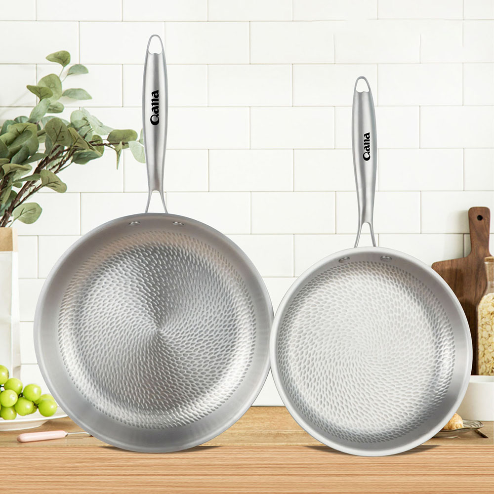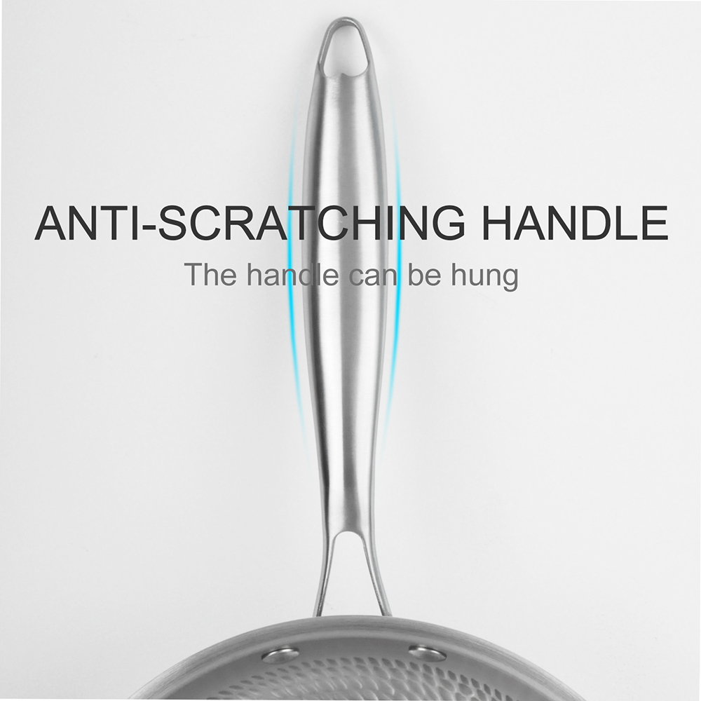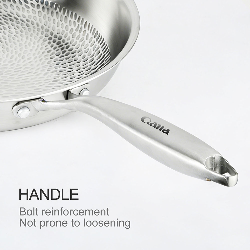 - HexClad 14 Inch Hybrid Stainless Steel Wok Pan with Stay Cool Handle Oven Safe for Daily CookingHEXCLAD PATENTED TECHNOLOGY: The hexagon design is created through a laser etching process to provide both stainless steel and non stick surface. This dual surface allows your non stick pan to sear still while using less oil, grease, and butter