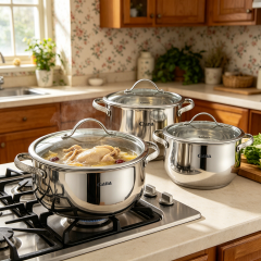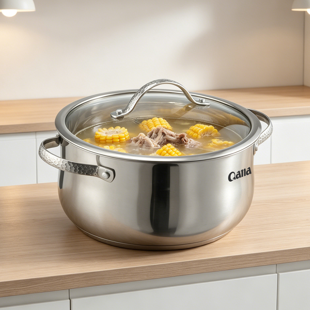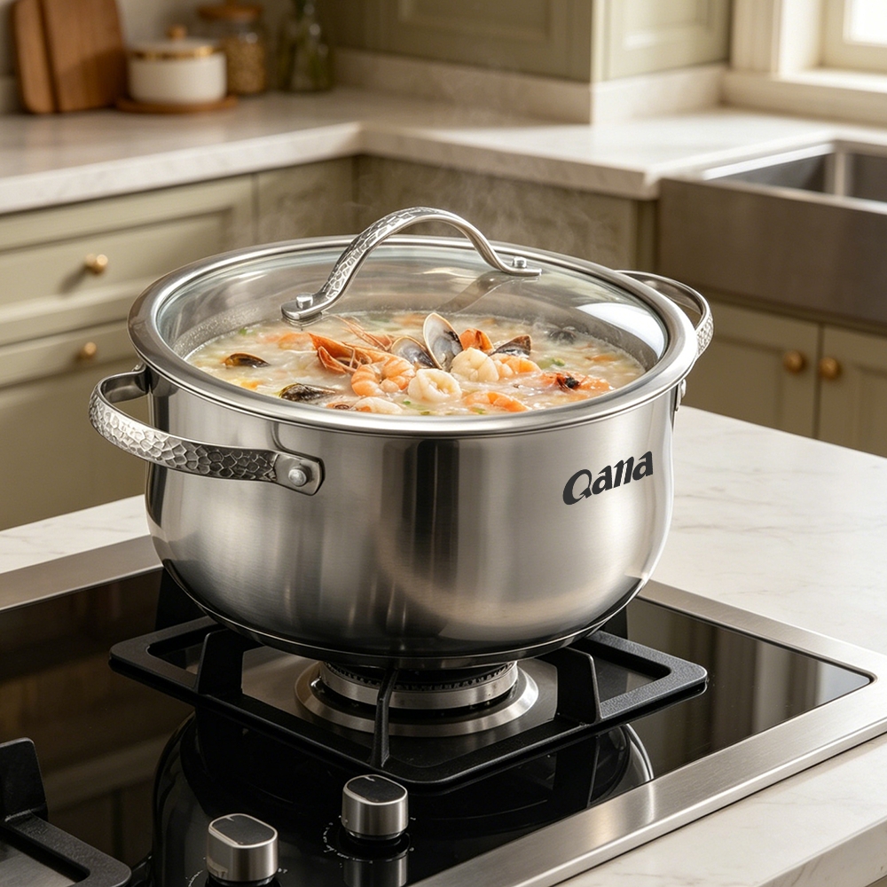 - Anyfish Stainless Steel Cookware 16PC Cookware Set Includes Saucepans Steamer and Lids【A DREAM SET】 Stainless steel cookware includes 2.3QT & 3.2QT saucepans with cover, 7.7” steamer insert, 8.9” open skillet, 10” skillet with cover, 4QT saute pan with cover,8QT stockpot with cover, stainless steel turner, slotted turner, ladle and slotted spoon.
