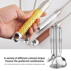 Ceramic Handle Kitchenware Set 7 PCS Stainless Steel Durable Shovel Spoon Soup Ladle Utensil Set with Standing Rack