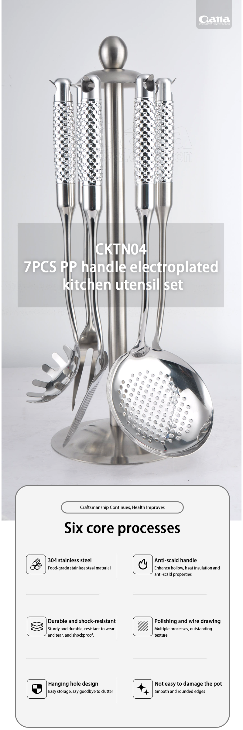 QANA Factory Wholesale OEM 7Pcs Stainless Steel Kitchenware Tools set kitchen utensil
