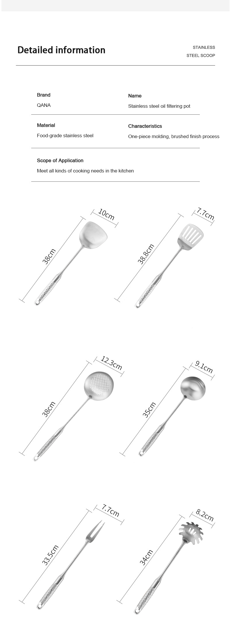 QANA Factory Wholesale OEM stainless steel kitchenware kitchen utensils for cooking kitchen utensils supplier slotted turner