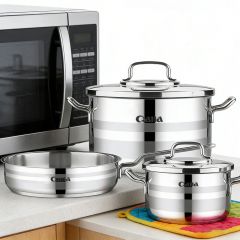 Three-layer steel cookware set