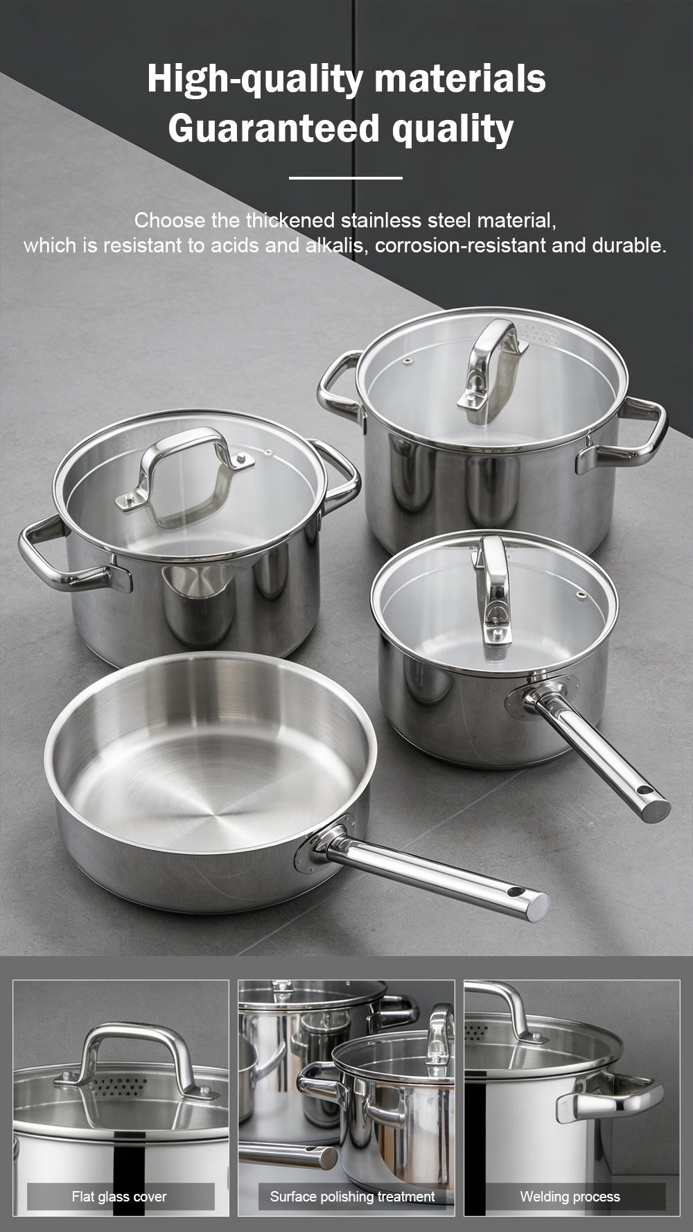 - Anyfish Stainless Steel Cookware 16PC Cookware Set Includes Saucepans Steamer and Lids【A DREAM SET】 Stainless steel cookware includes 2.3QT & 3.2QT saucepans with cover, 7.7” steamer insert, 8.9” open skillet, 10” skillet with cover, 4QT saute pan with cover,8QT stockpot with cover, stainless steel turner, slotted turner, ladle and slotted spoon.