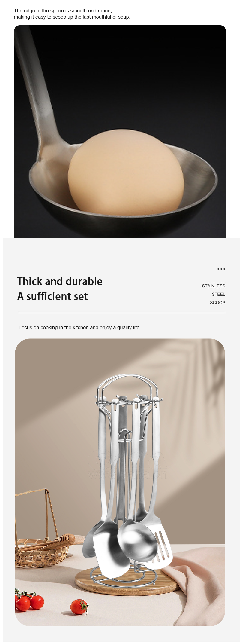 Ceramic Handle Kitchenware Set 7 PCS Stainless Steel Durable Shovel Spoon Soup Ladle Utensil Set with Standing Rack