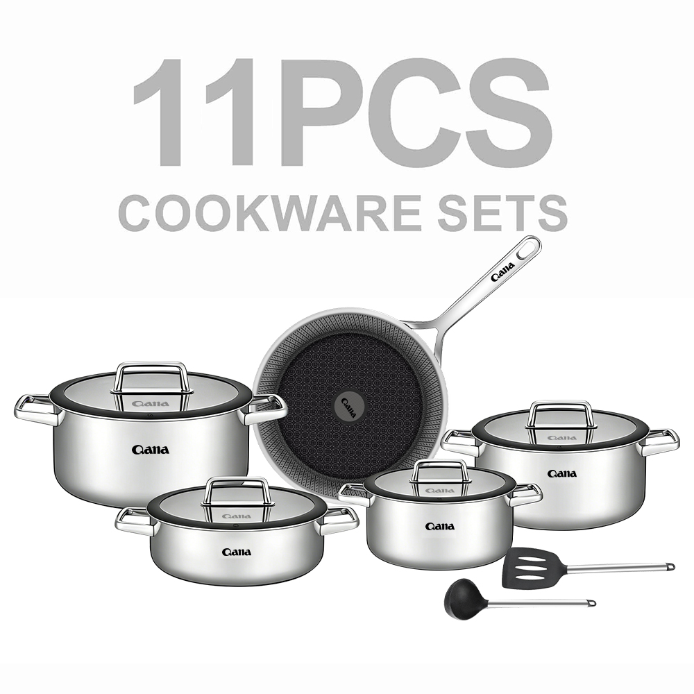 - Anyfish Stainless Steel Cookware 16PC Cookware Set Includes Saucepans Steamer and Lids【A DREAM SET】 Stainless steel cookware includes 2.3QT & 3.2QT saucepans with cover, 7.7” steamer insert, 8.9” open skillet, 10” skillet with cover, 4QT saute pan with cover,8QT stockpot with cover, stainless steel turner, slotted turner, ladle and slotted spoon.