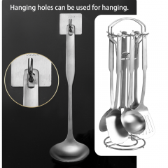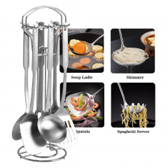 Ceramic Handle Kitchenware Set 7 PCS Stainless Steel Durable Shovel Spoon Soup Ladle Utensil Set with Standing Rack