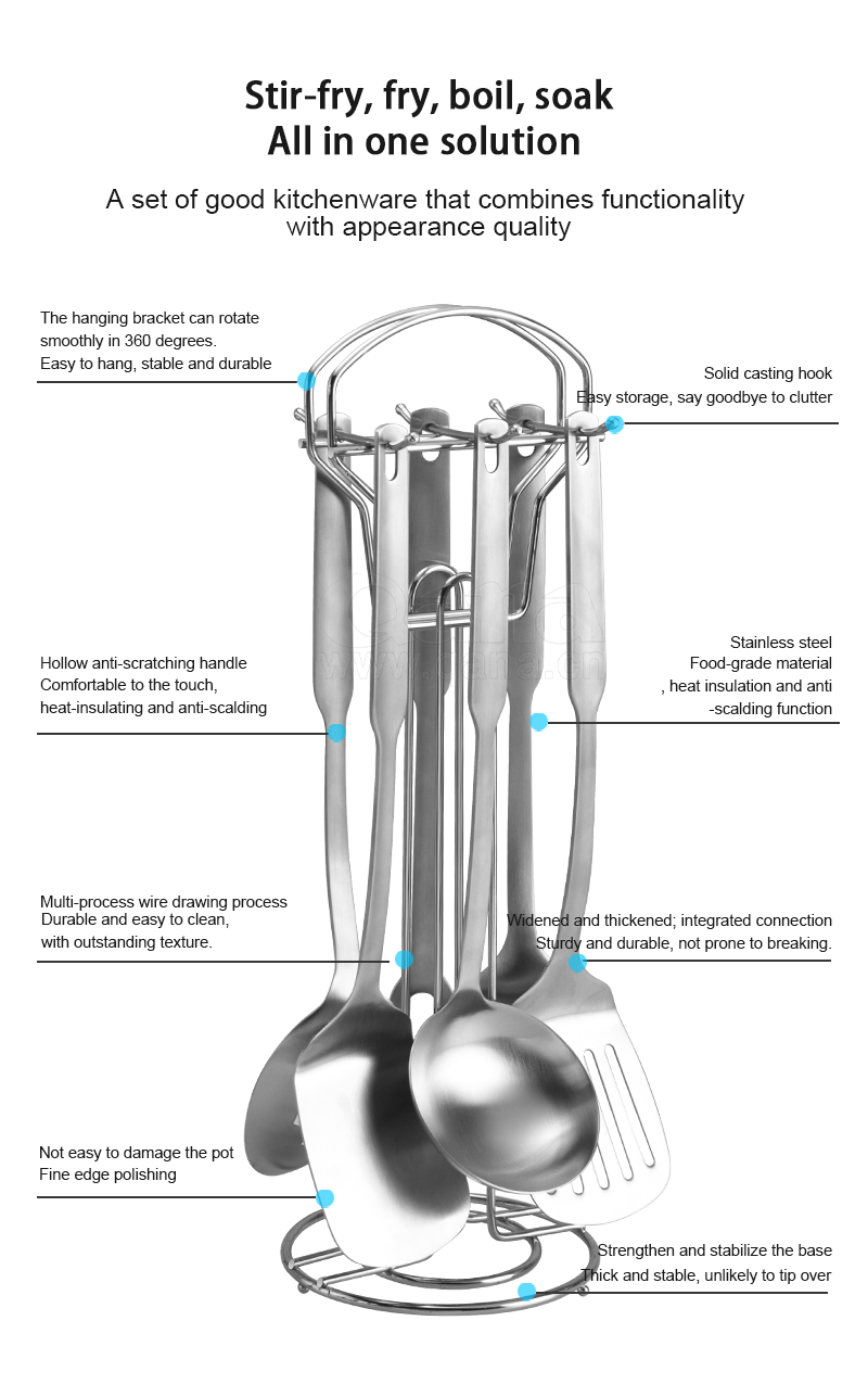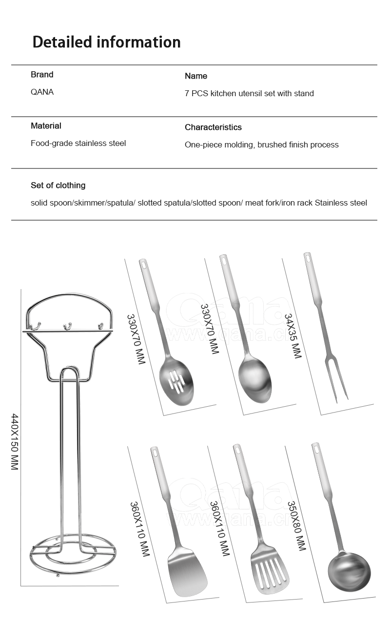 QANA Factory Wholesale OEM 7Pcs Stainless Steel Kitchenware Tools set kitchen utensil